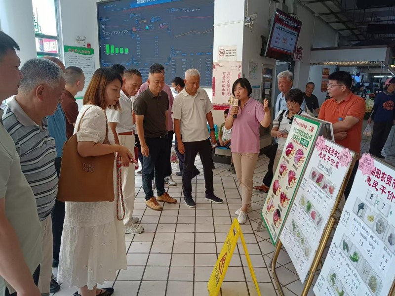8月7日下午,厦门市市场监管局领导、夏商集团总经理谷涛、夏商农产品集团董事长李东阳一行10人到朝阳农贸市场参观考察,朝阳股份工会主席尤勇热情地接待了来访的客人们。 在朝阳农贸市场蔬菜区的智能电子秤前,市场经理华艳向客人们详细介绍了市场统一进货渠道,商品批发零售的交易信息通过互联网流转,呈现给消费者的是商品从产地到餐桌清晰明了的流通节点,从而食品安全更加放心;智慧农贸系统中价格管控,从而商品价格更加实惠。期间,正好看到惠民平价区的数百框阳光玫瑰已售罄,但还有很多等着补货的顾客在排着长队,纷纷竖起来大拇指。客人们表示朝阳农贸市场的数字化建设工作真正做到了老百姓的心坎里。