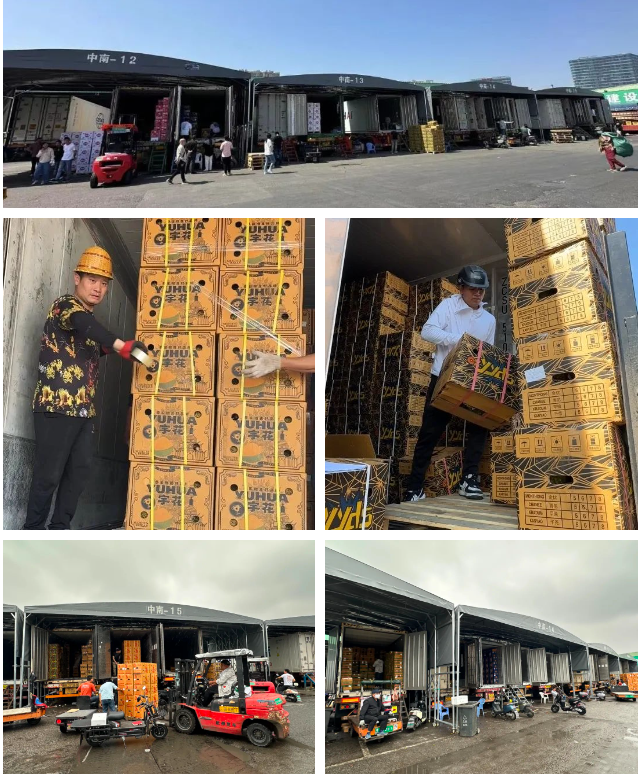 初夏时节,朝阳水果市场弥漫着浓郁的榴莲香气。每天清晨,中南柜车区前,榴莲柜车整齐排列,工人们动作娴熟地将一箱箱榴莲从货柜卸下,平板车来回穿梭运送货物,会员们络绎不绝,榴莲交易一片火热。