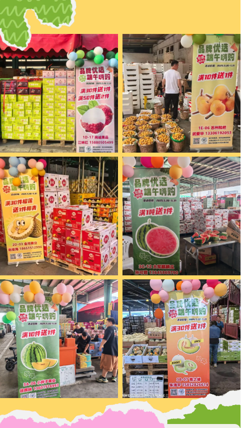 水果市场共26位品牌商积极参与本次活动,大家提前联系产地进行备货,推出端午适销的枇杷、荔枝等精品礼盒。市场开市后,会员们热情采购,享受活动价,增加拿货量,榴莲迅速售出半车。为保障广大会员能够采到高品质好货,供应商排好发货计划,每天新鲜到货,预计榴莲柜车每天到货30余柜,荔枝全程冷链运输。在这浪漫的日子里,快来感受枝头直达心头的甜蜜吧。