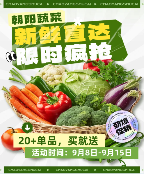 活动时间:9月8日-9月15日 缤纷鲜果 纵享甜蜜  夏末的风还带着暖意 九月的感恩序曲已轻轻奏响 想对师长说声感谢 一份新鲜菜果,就能让心意满溢 在朝阳农产品大市场 还藏着超惊喜劲爆价  选颗石榴表心意?的软籽石榴超划算! 劲爆价2.9元/斤,果肉颗颗饱满, 咬下去满是清甜汁水, 多囤几箱送师友,性价比直接拉满!  带箱蜜橘传温情?现在入手超实惠! 蜜橘直降2.5元 / 斤,8公斤定包装50元/件 橙黄的外皮轻轻一剥就开, 果肉入口爆汁,酸甜口感超解腻, 即刻抢购,新鲜省钱!  挑个哈密瓜送感恩?特价福利别错过! 哈密瓜劲爆价1.9元 / 斤,比平时买省一半! 果肉脆嫩无丝,切开就能闻到浓郁甜香, 沉甸甸的分量里满是诚意, 口口尝到实实在在的甜蜜!  抢鲜蔬啦!特价福利别错过! 20+品种蔬菜,鲜嫩水灵,价格实惠, 吃着新鲜又健康,性价比直接拉满! 限时一周!多买多送!实惠到家! 朝阳农产品大市场 把对师长的感恩都藏进了 爆款菜果的 “抄底价” 中 让每一颗菜果都新鲜看得见 每一个价格都实惠得心动 这个九月,来朝阳农产品大市场 用一口天然的甜,道一声 “谢谢您” 让感恩既有温度,又有超高性价比! (供稿:张柯宇) |