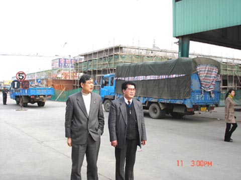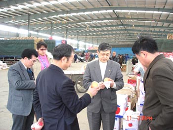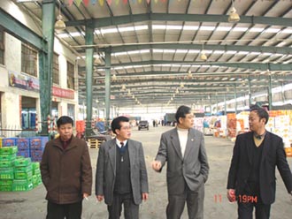 3月11日,中国果品流通协会常务副会长傅秀泉、副会长陈光辉、信息部助理孟伟来锡澄果菜副食品交易市场视察工作。朝阳集团公司总经理杨兴德先生陪同。