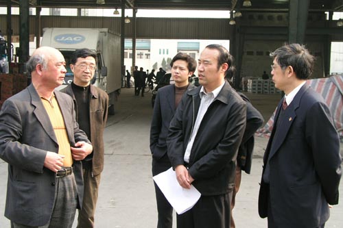 随后,吴副市长一行在张海良董事长、杨兴德总经理的陪同下,实地察看了朝阳农贸市场、朝阳蔬菜交易市场。在锡澄果品市场,市领导针对正在规划中的“朝阳农产品大市场”进行了认真的研讨,并表示将尽快把这一规划付之实施。