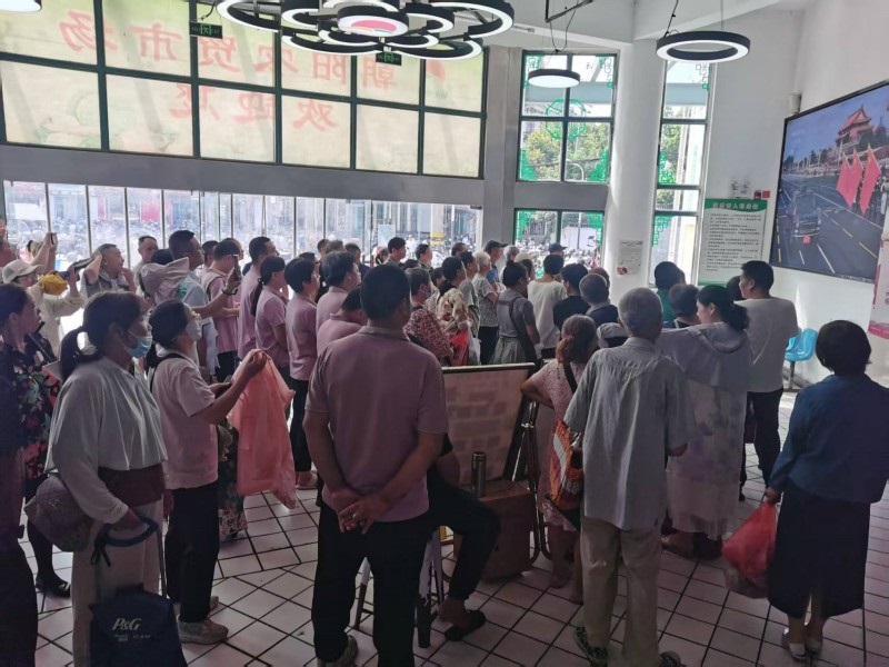 当日上午,员工们早早来到集合地点,怀着激动的心情等待阅兵式开始,经营户加入进来了,买菜的顾客也加入进来了,整个市场门厅里挤满了观众,当看到整齐划一的徒步方队、先进的装备方队和空中梯队依次通过天安门广场时,祖国的强大和繁荣深深地震撼着每个人的心,生于华夏的自豪感和幸福感油然而生。