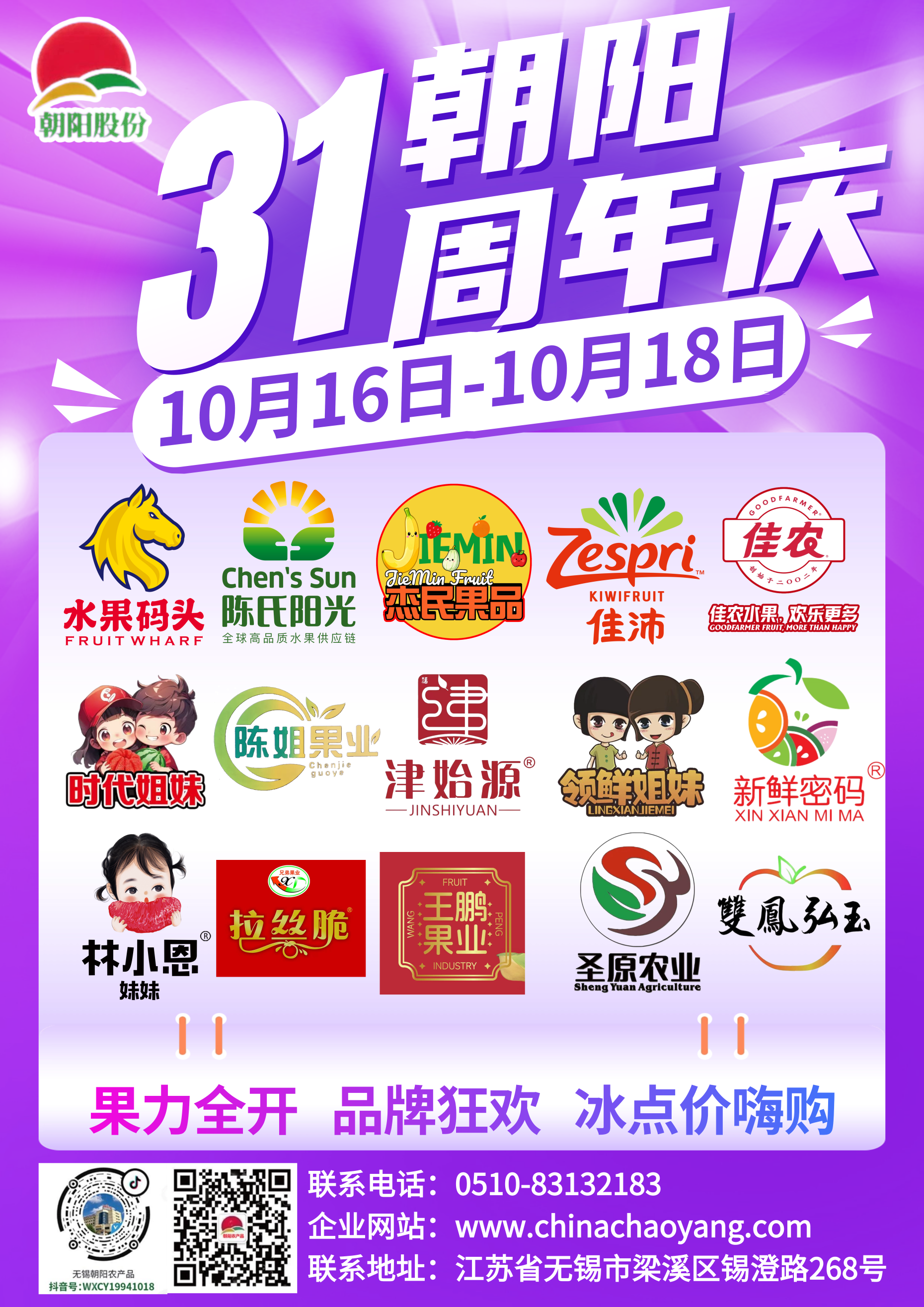 1994 202531 年时光流转,朝阳农产品大市场始终坚守 让新鲜触手可及的初心。如今,我们即将迎来 31 周年庆,一场集结全球尖货、国内名品的品牌专属大促展销盛典,将于 10 16-18 日重磅开启!这不仅是对过往 31 年的致敬,更是联合各大品牌为所有热爱水果的朋友们,打造的一场甜蜜狂欢。