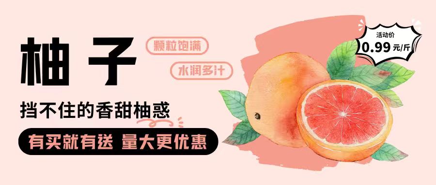 柚子:皮薄肉厚、果肉晶莹剔透,酸甜比例恰到好处。超值福利价0.99元/斤,解锁秋冬润燥神器!