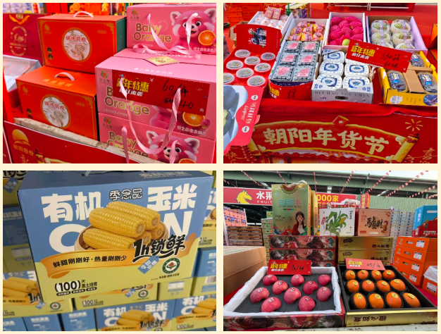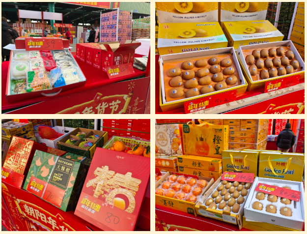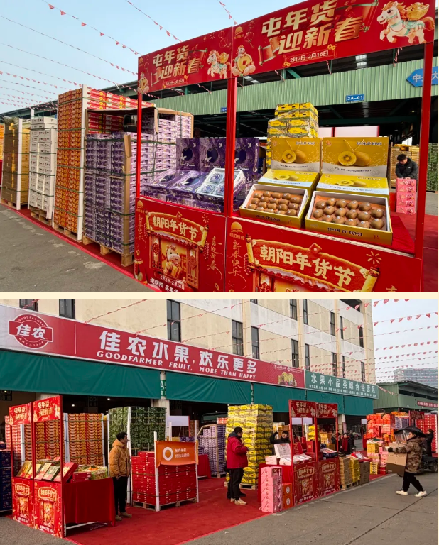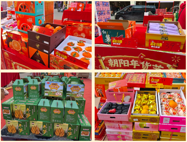 金马迎新春,年货正当红!万众期待的朝阳年货节已盛大启幕!即日起至2月16日,现场锣鼓喧天、人气爆棚,展销区琳琅满目的好物、花样繁多的福利、力度拉满的优惠,承包您的新春采购全部需求,一站式解锁最浓年味,快来赴这场新春嗨购盛宴! 注:水果市场营业时间 6:00-17:00 蔬菜市场营业时间11:00-21:00 一踏入年货节现场,热烈的新春氛围便扑面而来!红彩旗高挂、中国结摇曳,处处洋溢着喜庆的新年气息。精心打造的专属展销区划分清晰、品类齐全,鲜果鲜蔬、特色年货、精品礼盒分区陈列,一眼就能找到心仪好物,逛购体验直接拉满,新春囤货省心又舒心! 本次年货节精品礼盒多到挑花眼,颜值与品质双在线,承包您走亲访友、阖家团圆的所有送礼需求!无论是高端鲜果组合礼盒,车厘子、春见、苹果等优质鲜果精心搭配,大气精致;还是时令鲜蔬礼盒,冬笋、菌菇、山芋等精品鲜蔬新鲜集结,健康实惠;更有各类特色年货礼盒,款式丰富、档次齐全,从亲民款到高端款全覆盖,按需挑选,送礼倍有面儿,自留超划算!