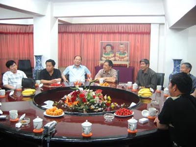5月27日,由洑福强会长率领的江苏省肉类协会考察组一行10多人,来锡澄市场参观考察。朝阳集团公司总经理杨兴德、书记华泉荣接见了到访客人。