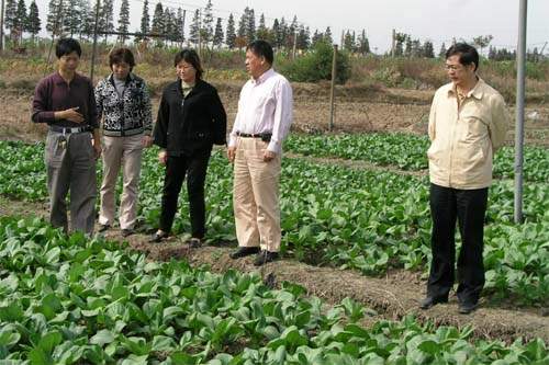 近日,朝阳集团总经理杨兴德、朝阳蔬菜市场总经理王汉如,会同市场蔬菜配送、检测中心、集团信息中心等人员,前往锡山区锡北镇斗南农场,查看承担“农产品安全质量监控技术研究与开发”项目的基地建设情况和近期蔬菜长势。落实了今后一段时期无公害蔬菜的上市周期及示范方案。