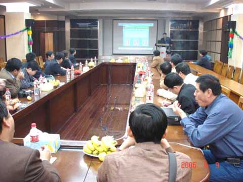 王总向辽宁客人详细介绍了朝阳农产品大市场的总体发展规划。双方就如何加强合作,将辽宁省朝阳地区的水果引入无锡销售进行了磋商和探讨。