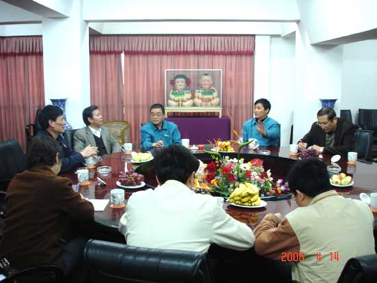 4月13日-14日,杭州果品有限公司董事长、总经理王海根一行8人到朝阳农产品大市场参观考察。朝阳集团公司董事长张海良、总经理杨兴德,朝阳股份公司总经理钱韧等热情接待了来访的杭州客人。